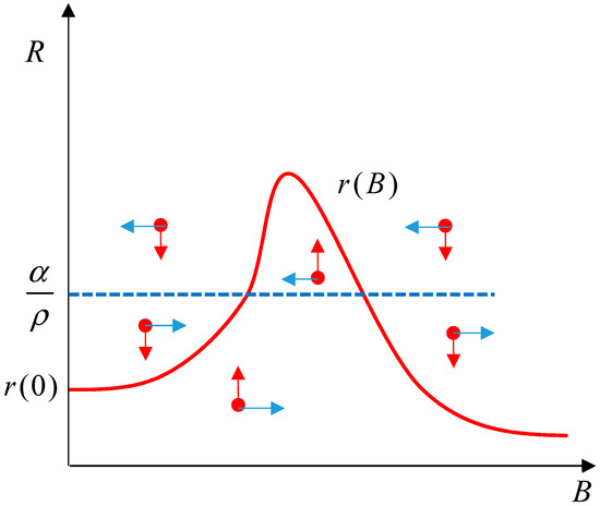 Although a constant value of target information is somewhat reasonable, in reality it is more likely that it is dynamically changing as a function of the two forces, which is monotone non-decreasing in R and B. Assuming that both and are continuously differentiable, considering the second equation in Equation (25) and using the implicit function theorem, there is a continuously differentiable function satisfying