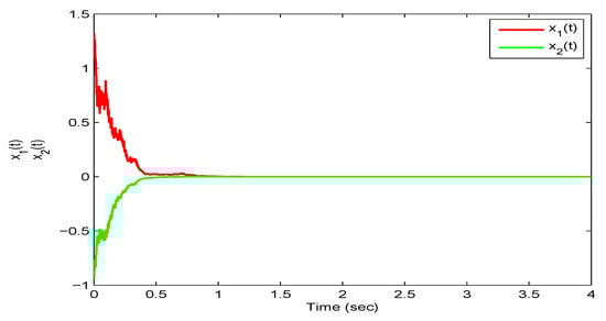 It should be noted that network models are susceptible to stochastic disturbances. In this respect, numerous researchers have investigated the stability issues with stochastic inputs for different types of NN models. Among the studies are included passivity, robust stability, mean squared exponential stability, global exponential stability, as well as robust state estimation [,,,,]. In our study, in Theorem 2, we obtained sufficient conditions for the robust globally asymptotic stability in the mean square in terms of the LMI approach. The conditions were more concise than those obtained in [] and much easier to check.
