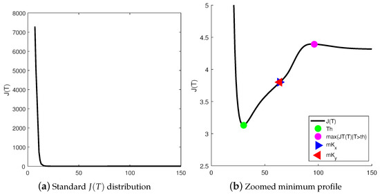 where , , and for the interval established as for and for . Therefore, the minimal error threshold is estimated such as