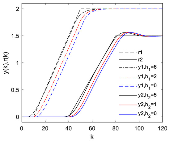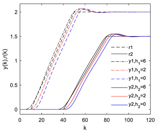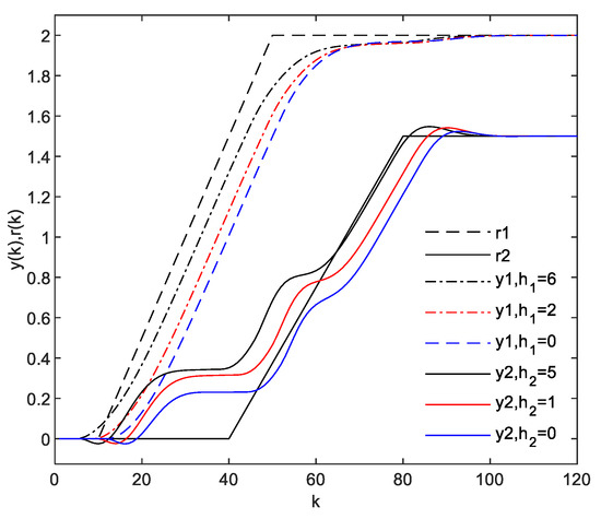 With the rapid development of computer, electronics and information technology, industrial systems are becoming larger and more complex. Therefore, it is more interesting to consider the control problem of MIMO systems. For example, the preview control problem of MIMO systems was studied in [36] by combining linear quadratic optimal theory with the AES method. However, the dimension of an AES is high and the calculation is complex. In addition, through numerical simulations, we find that the preview control effect is not ideal when the reference signal is a vector, as in [11,13,15,36,37]. The components of the reference signal influence each other, and the influence is often negative. However, for a high-dimensional reference signal, the AES constructed in [11,13,15,36,37] not only has a high dimension, but the component signals also share the same preview length.