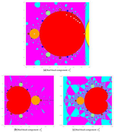 - Lee, M.-Y.; Kim, Y.I. Bifurcations along the Boundary Curves of Red Fixed Components in the Parameter Space for Uniparametric, Jarratt-Type Simple-Root Finders. Mathematics 2020, 8, 51. [Google Scholar] [CrossRef]
