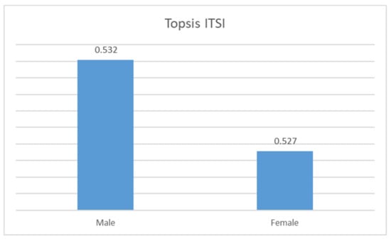 Figure 2 shows the graph of the results of institutional trust when segmentation is performed according to gender. The results show that men experience more institutional trust than women. It is well known that in Latin America, the men participate more than women in public institutions, and participation is usually aligned with trust. This result is concordant with that obtained in the Americas Barometer by LAPOP (Latin American Public Opinion Project), where women experience less interpersonal trust than men [].