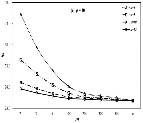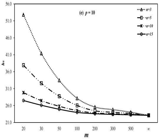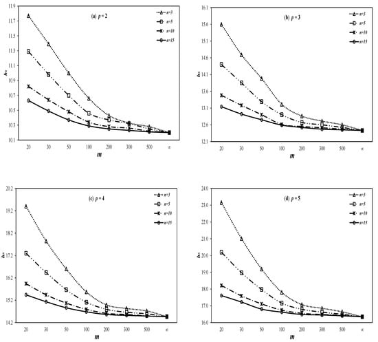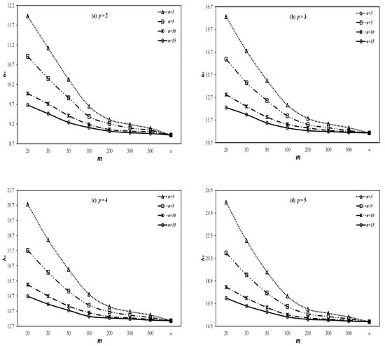 In order to study the estimation effect of parameters on and, the related results are provided in Table 5 and Table 6, respectively. For this, we produced the and values at );. For the suitable choice of subgroup size , the literature may be recommended in this direction, for example, see [46,47] and the references therein. It is to be noted that the estimated . and results converge to the results for the known parameter if .