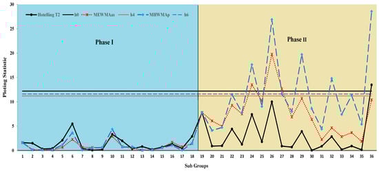- Mahmoud, M.A.; Maravelakis, P.E. The Performance of the MEWMA Control Chart when Parameters are Estimated. Commun. Stat. Simul. Comput. 2010, 39, 1803–1817. [Google Scholar] [CrossRef]