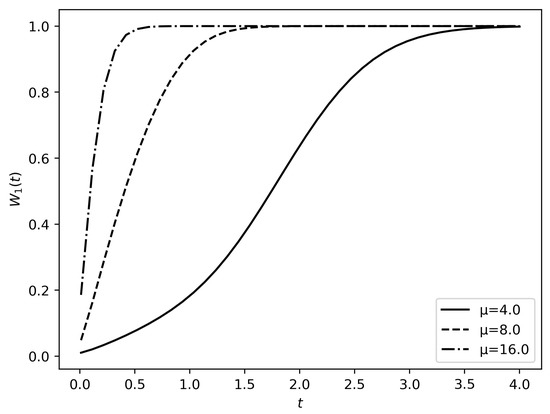 As expected, under the fixed value of the function increases with increasing t and tends to 1 when It is also clear that the value of the function increases with increasing the service rate Note also that the growth rate is greater for larger values of