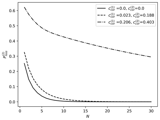 Figure 3, Figure 4, Figure 5 and Figure 6 show the dependence of the loss probabilities on the buffer capacity N for the systems with s having different coefficients of correlation.