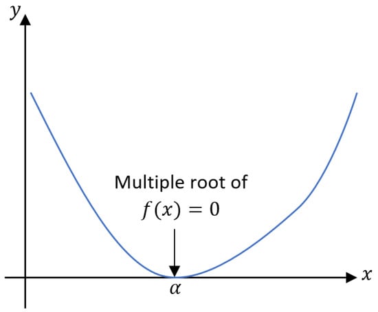 Example 5. The characteristic polynomial of non-singular matrixis defined as a function: Clearly, the characteristic function in Equation (40) has one of the zeros with multiplicity . Thus, the desired root is , while testing the schemes. The numerical outcomes of the nonlinear function in Equation (