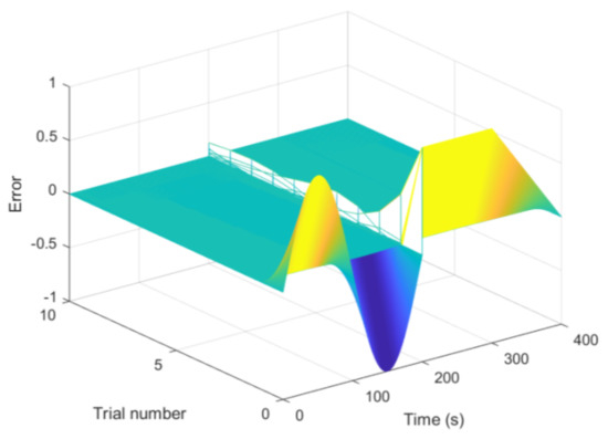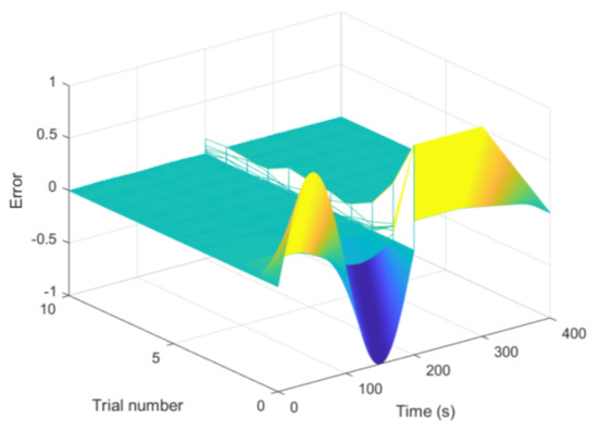 Therefore, within a finite certain frequency range , the system under iterative learning control is robustly stable along the pass and monotonic pass-to-pass error convergence occurs. Then the gain matrix of the iterative learning control law can be obtained, as shown in Equation (42).