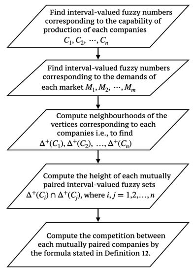 To find the strength of competitions among companies in manufacturing industries, the calculation flow is shown as a flowchart in the Figure 6. To explain the problem, in particular, let us consider the following example.