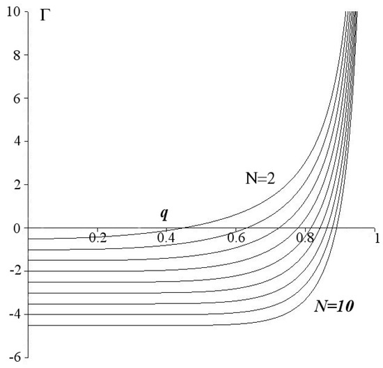According to the properties and of the Proposition A1 of Appendix A, the value is positive for any N and :