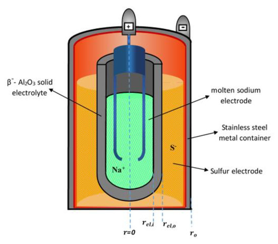 - Schaefer, S.; Vudata, S.P.; Bhattacharyya, D.; Turton, R. Transient modeling and simulation of a nonisothermal sodium-sulfur cell. J. Power Sources 2020, 453. [Google Scholar] [CrossRef]