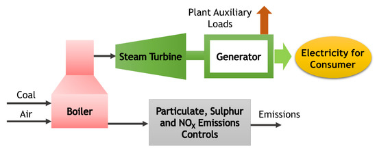 Regarding coal, although its usage is predicted to decrease, it still has a significant participation [2] in electricity generation. The competition between coal, natural gas, and renewable sources [5] has discouraged the launching of new coal-fired power plants. Thus, there is a high possibility that most of the coal-fired power plants being utilized are originally designed to be operated in a baseload manner. Furthermore, these coal-fired power plants are mostly operated at off-design conditions to provide flexible power generation [6]. Enforcing cycling operation on designed baseload power plants may introduce inefficiencies to the systems, as these plants are no longer operating at their optimal design points. Cycling may also increase the emissions from the power plant side and decrease the power plant lifetime due to unexpected wear and tear [4,6].