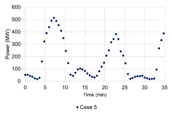 Overall, five case studies are considered. Initially, four case studies are assessed considering the dispatch of NGCC, SCPC, and NaS batteries to accommodate different levels of renewable penetrations into the grid, while supplying the demand using the optimization problem statement in Section 2. Figure 7 and Figure 8 show the different power demands and renewable penetration levels considered in these four case studies. Then, for the fifth case study, a more challenging renewable penetration scenario is elaborated, and an in-depth stress analysis is performed.