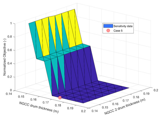 Sensitivity analysis of optimization objective due to NGCC and NGCC 2 drums’ thicknesses.