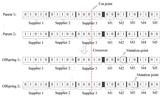 Genetic operations are indispensable parts in genetic algorithms. In the proposed problem, one-point crossover and one-point mutation is implemented to avoid dramatic changes in genetic structure due to the particular chromosome properties, which will prevent random genetic searches additionally.