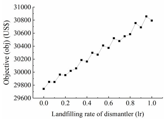 Figure 10, it can be seen that the total cost increases slightly with the increase of the landfilling rate and remains basically constant, which indicates that the model has a good robustness.