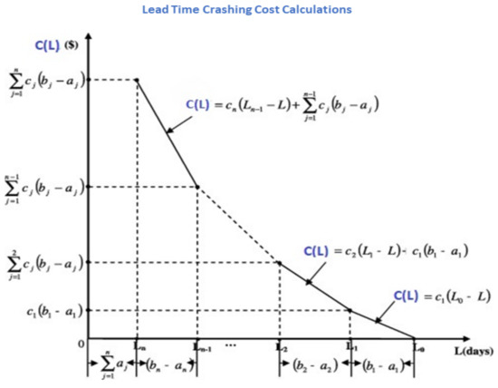 - The lead time is controllable with additional crashing cost . The lead time crashing cost is calculated by . The crashing cost is owed altogether to the buyer’s cost component in assumed centralized and decentralized SCM. In coordination model, the ratio of the crashing cost is paid by the vendor and rest of part is burdened by the buyer which is . This basically depends on the bargaining power of the player of the integrated model (see for reference [56]).