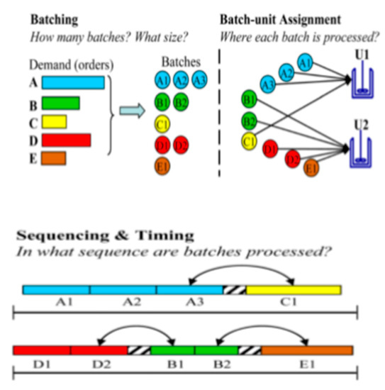 - Harjunkoski, I.; Maravelias, C.T.; Bongers, P.; Castro, P.M.; Engell, S.; Grossmann, I.E.; Wassick, J. Scope for industrial applications of production scheduling models and solution methods. Comput. Chem. Eng. 2014, 62, 161–193. [Google Scholar] [CrossRef]