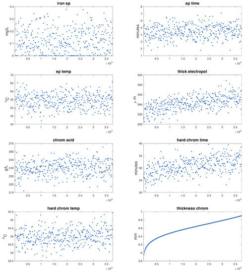 The set-up of any industrial process is mainly driven by the experience of the manufacturer. This is also the case of hard chromium plating. One of the most challenging tasks is the attainment of a chromium layer with the required thickness inside tolerance. There are three main methodologies to measure the thickness of the hard chromium layer. One consists of measuring the part before and after the plating; a second method is a destructive test, which requires cutting some pieces and measuring the thickness of the chromium layer with the help of an electronic microscope; and the third is the measurement of the thickness with the help of a device based on eddy currents [26,27] or in any ultrasonic non-destructive test [28]. Usually, during the process set-up, variables like current, voltage and process time are fixed according to piece geometry and the thickness of the layer required. During the process operation, those parameters, together with others [29] such as bath temperature, bath volume, and solution density, are controlled. The purpose of the use of a machine learning-based methodology in order to predict chromium layer thickness in the hard chromium plating process is two-fold: such an approach makes it easier, first, to set up a new industrial process and, second, to control how the thickness of the chromium layer changes according to the variations in the operation variables that are monitored. In other words, the aim of the proposed method is not to completely replace the measurement of the hard chrome layer by classical methods, but to also speed up the set-up process and reduce the required inspection frequency.