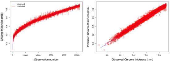 Moreover, the model illustrated its capacity to predict the thickness of the hard chrome layer. Figure 8 indicates the comparison between the observed and predicted values of the thickness of the hard chrome layer using this hybrid DE/GBRT-based model. Thus, a suitable approach to tackle the issues associated with the nonlinearities of the problem is the utilization of a DE/GBRT–based model.