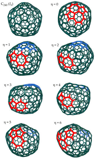 - Fowler, P.W.; Manolopoulos, D.E. An Atlas of Fullerenes; Dover Publications Inc.: Mineola, NY, USA, 1995; pp. 1–392. [Google Scholar]