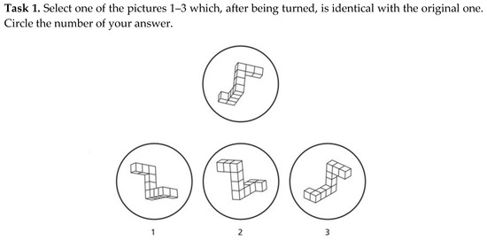 - Vandenberg, S.G.; Kuse, A.R. Mental Rotations, a Group Test of Three-Dimensional Spatial Visualization. Percept. Mot. Ski. 1978, 47, 599–604. [Google Scholar] [CrossRef] [PubMed]