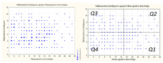 Reflecting the independence of both variables, respondents can be divided into the four quadrants, following the set of inequalities (1–4) based on the works by van Aalderen-Smeets, Molen [87], where represents metacognitive knowledge and represents mathematical intelligence,