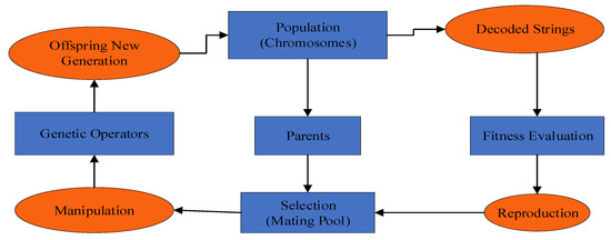The overall thoughts were conceived by a European country [16], whereas practicality of persecution of exhausting it to untie innovative concerns was indisputable. It may be a soft computing style, which implements strategies stimulated by usual hereditary knowledge to develop conclusions to matters [17]. Genetic Algorithm (GA) as shown in Figure 3 is refreshed by Darwin’s theory concerning progression, which is useful to a vast variety of methodical and industrial problems like optimization, machine learning, and automatic software design [18].