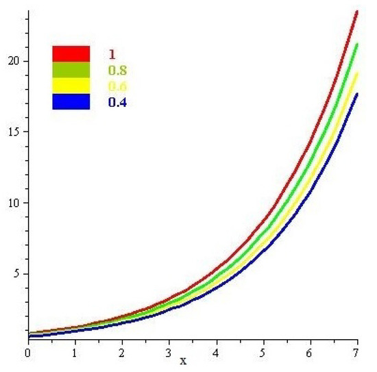 Solution graph of Example 1, at various value of .