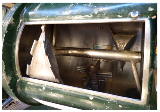 The proposed model is two-dimensional. Although a proof of concept for a three-dimensional model was presented in [18], future work should focus on the development of an extensive three-dimensional model. This is also necessary for the creation of a model to be applied in an industrial environment. To apply the model on an industrial level, adaptations such as an implementation of a hollow shaft, an increase in rotation speed of the mixing arms, and a shortening of the time step of the simulation would be needed. Another aim for future investigations is a thorough validation of the simulation results by using specially designed experiments.