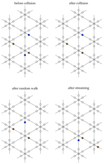 - Rivet, J.P.; Boon, J.P. Lattice Gas Hydrodynamics; Cambridge Nonlinear Science Series 11; Cambridge University Press: Cambridge, UK, 2001. [Google Scholar]