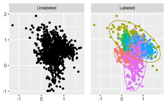 - Melnykov, V.; Chen, W.C.; Maitra, R. MixSim: An R Package for Simulating Data to Study Performance of Clustering Algorithms. J. Stat. Softw. 2012, 51, 1–25. [Google Scholar] [CrossRef]