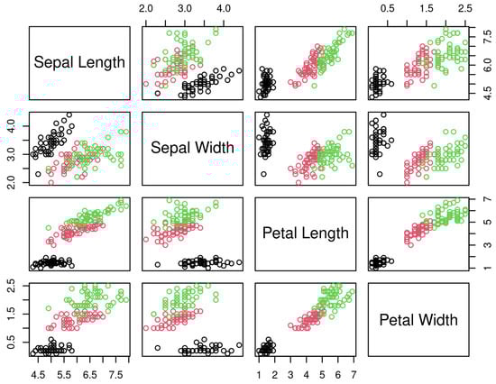 - Fisher, R.A. The use of multiple measurements in taxonomic problems. Ann. Eugen. 1936, 7, 179–188. [Google Scholar] [CrossRef]