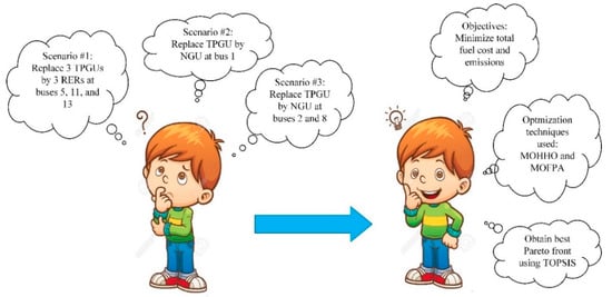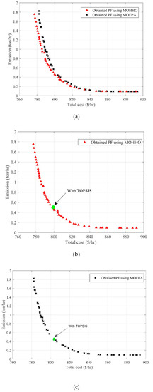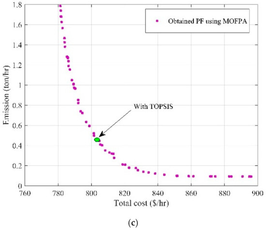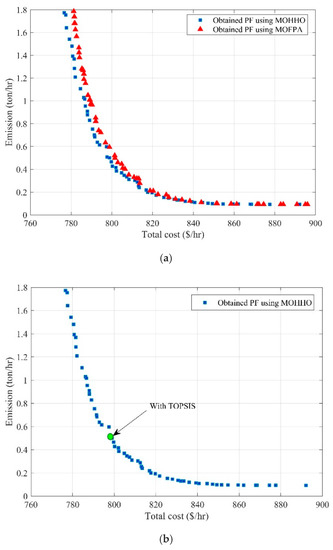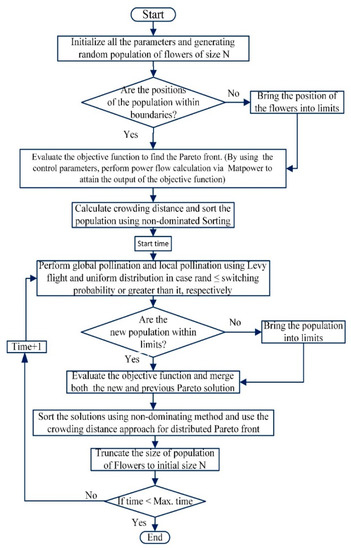 Two optimization techniques of MOHHO and MOFPA are applied to the problem under study. The TOPSIS performance indicator is utilized to rank Pareto fronts (PFs) obtained from multi-objective optimization algorithms. The procedure of the proposed techniques is illustrated in Figure 2.