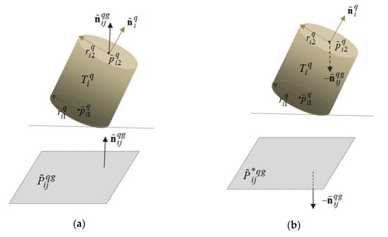 where denotes a unit vector of the external normal to the half space and stands for a unit vector of the external normal to the object (see Figure 3).