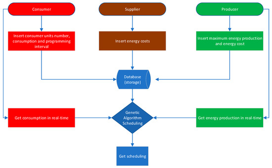 In addition to the monitoring system, there are display interfaces (web client) to indicate to the client how to undertake consumer programming. Thus, the flow of planning for household consumers is presented in Figure 4.