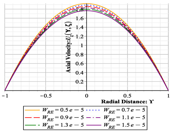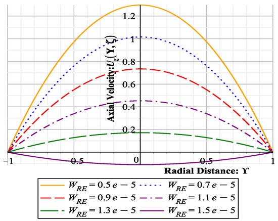 It has not escaped our notice that the last four terms in above expression of axial velocity vanish if the inertial terms in the momentum Equations (17) and (18) are neglected.