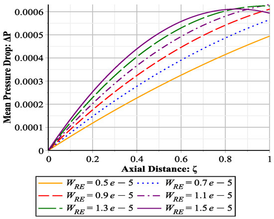 - Mean pressure drop in major flow direction increases with the increase of the value of wall Reynolds number . It is also observed that elastic parameter does not bring significant change in pressure drop, however pressure drop increases with increase of cross-viscosity parameter .