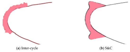 The horizontal tail is the important part of aircraft for the ability to affect aircraft longitudinal control and stability. To study the effect of icing on horizontal tail aerodynamic performance, data from [] are used, and the ice shapes of “Inter-cycle” and “Stability and Control (S&C)” on the horizontal tail are chosen, as shown in Figure 5. The identification results of clean aircraft in Section 4.1 are used as the initial value.