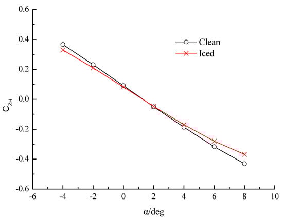 - The changes of and do not reflect great difference compared with horizontal tail iced aircraft, which means when the airplane has a tail, the wing contribute to and is often negligible in comparison with that of tail [].