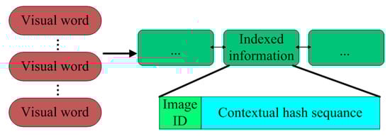 The structure of the inverted index file of our method is illustrated by Figure 6. Each visual word is followed by the indexed information, each of which stores the ID of the image where the visual word occurs and the contextual hash sequence. Note that the generation of the contextual hash sequence for each local CNN feature is described in next subsection.