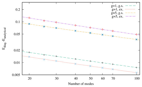 To obtain the exact results, when using a diagonalization method, we would need to use a complete basis. However this is not possible because of the infinite dimension of the Hilbert space. Therefore we are forced to diagonalize the Hamiltonian in a finite subspace. Usually, this procedure does not provide the exact eigenvalue. However, the lowest-energy obtained by diagonalization is still an upper-bound to the ground-state energy. Note this is in contrast to exact diagonalization problems in small and discrete spaces, modelling finite optical lattices [49], where the method provides the exact values within machine precision.