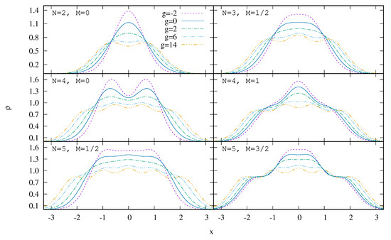 where are the 1D harmonic oscillator wave functions, Equation (4). The density profile is normalized to the number of particles.