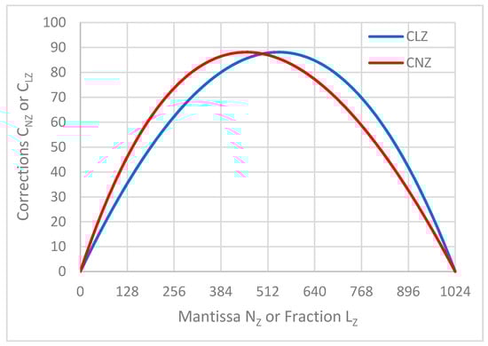 24] and, thus, must be implemented by our own means. Furthermore, the above methods available in the literature do not meet our requirements in that the accuracy of modern industrial sensors is better than 0.1%, and sampling periods in embedded systems for motion control are less than 1 ms, which places high demands on conversion speed and application calculations. Therefore, our motivation was to develop a simple and efficient FLP/LNS conversion guaranteeing sufficient accuracy and speed, which will be a “golden mean” between the accurate but complex approximation methods and the very efficient and fast (up to 1ns) but inaccurate (relative error higher than 1%) shift-and-add methods.