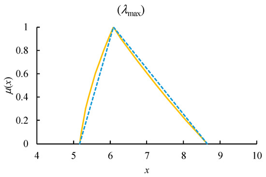 If α takes 11 possible values (0, 0.1, …, 1), Equations (5) and (6) must be solved 11· times to derive the membership functions of fuzzy eigenvalue and eigenvector as [26]: