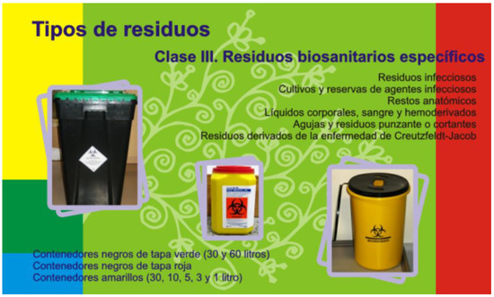- Mosquera, M.; Andrés-Prado, M.J.; Rodríguez-Caravaca, G.; Latasa, P.; Mosquera, M.E.G. Evaluation of an education and training intervention to reduce health care waste in a tertiary hospital in Spain. Am. J. Infect. Control 2014, 42, 894–897. [Google Scholar] [CrossRef]