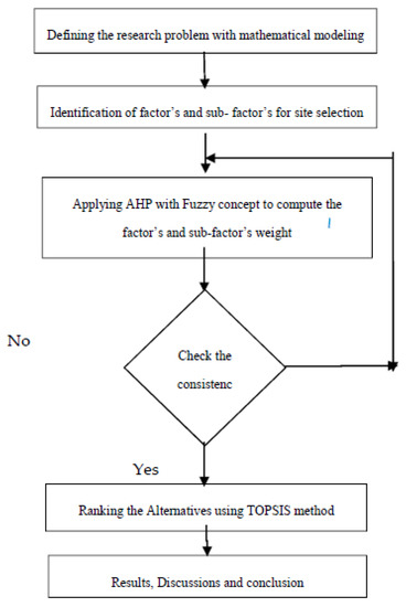 The authors of [31] opined that evaluation and determination of negative and positive characteristics of one location to another is a tough job. The authors of [32] used multinomial logit model and principal component analysis to take parking facilities, quality, value, satisfaction, and variety into consideration. The authors of [33] analyzed socialization, functionality, convenience, and recreation using Structural Equation Modeling. The authors of [34] conclude that the selection of a shopping mall site is not an easy task and the closer to reality the solution comes, the better the model. Multi Criteria Decision Making (MCDM) takes this into account by considering all the criteria and determining an optimal result. The authors of Reference [19] did a MCDM study on selection of safety equipment using universal design principles. The authors of Reference [35] solved a landfill selection problem in Canada by using a fuzzy MCDM approach. The authors of Reference [36] used MCDM on hesitant fuzzy linguistic terms for site selection of wind turbines. MCDM was used by the author of [37] in site selection of a GIS-based solar farm. The author of [38] referred to MCDM in the field of information technology and IT management. The authors of [39] used MCDM for the TOPSIS method in the field of operations research. The authors of [40] used MCDM for formulating energy policies. The authors of [41] used MCDM for formulating a technique on renewable energy. The authors of [42] used it for logistic suppliers under supply chain management, the authors of [43] have used it for knowledge management, the authors of [44] have adopted MCDM in the field of tourism management, and the authors of [45] used it for construction management.