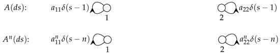 This expression for the fundamental solution in the case can be found in References [,,]. Note that the computation for the fundamental solution is simplified by the restriction of a finite number of discrete atoms in the discrete singular component, and a zero continuous singular component.