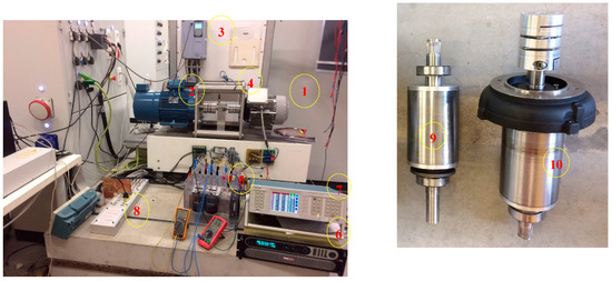 In order to verify the proposed PVWPS, an experimental laboratory test bench is constructed as illustrated in Figure 12. The test bench includes (1) FMSynRM or SynRM; (2) induction motor (IM) driven by (3) a commercial inverter to emulate the pump characteristics; (4) torque sensor; (5) three-phase inverter to drive the FMSynRM; (6) controlled DC supply; (7) power analyzer; (8) dSpace 1103 connected to PC; and rotor with (9) and without (10) ferrite magnets.