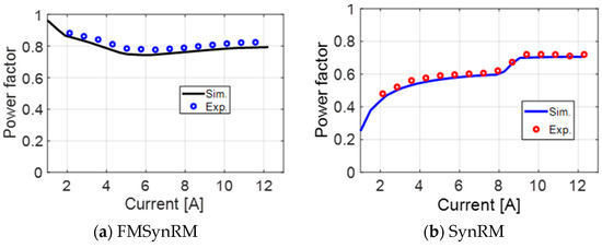 Figure 15 shows the measured and simulated power factor of the motors at various winding currents up to the rated value. The loading condition is represented by the winding current of the motor where the rated load is of course at rated current. It is worth noting that FMSynRM has a high power factor, particularly at low-load cases thanks to the impact of the magnet. Evidently, using FMSynRM in the solar pumping system will improve the inverter size (volt–ampere rating).